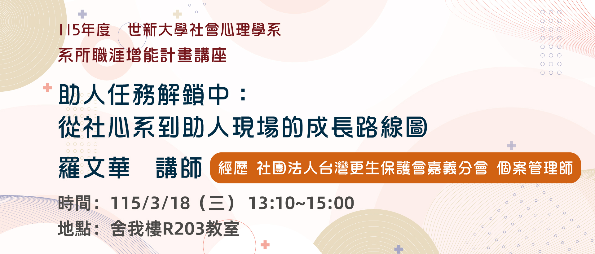 【115年度系所職涯增能講座】助人任務解鎖中:從社心系到助人現場的成長路線圖